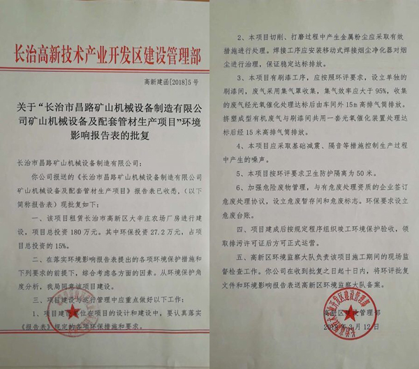 榮獲長治高新區(qū)環(huán)境影響報告表的批復
